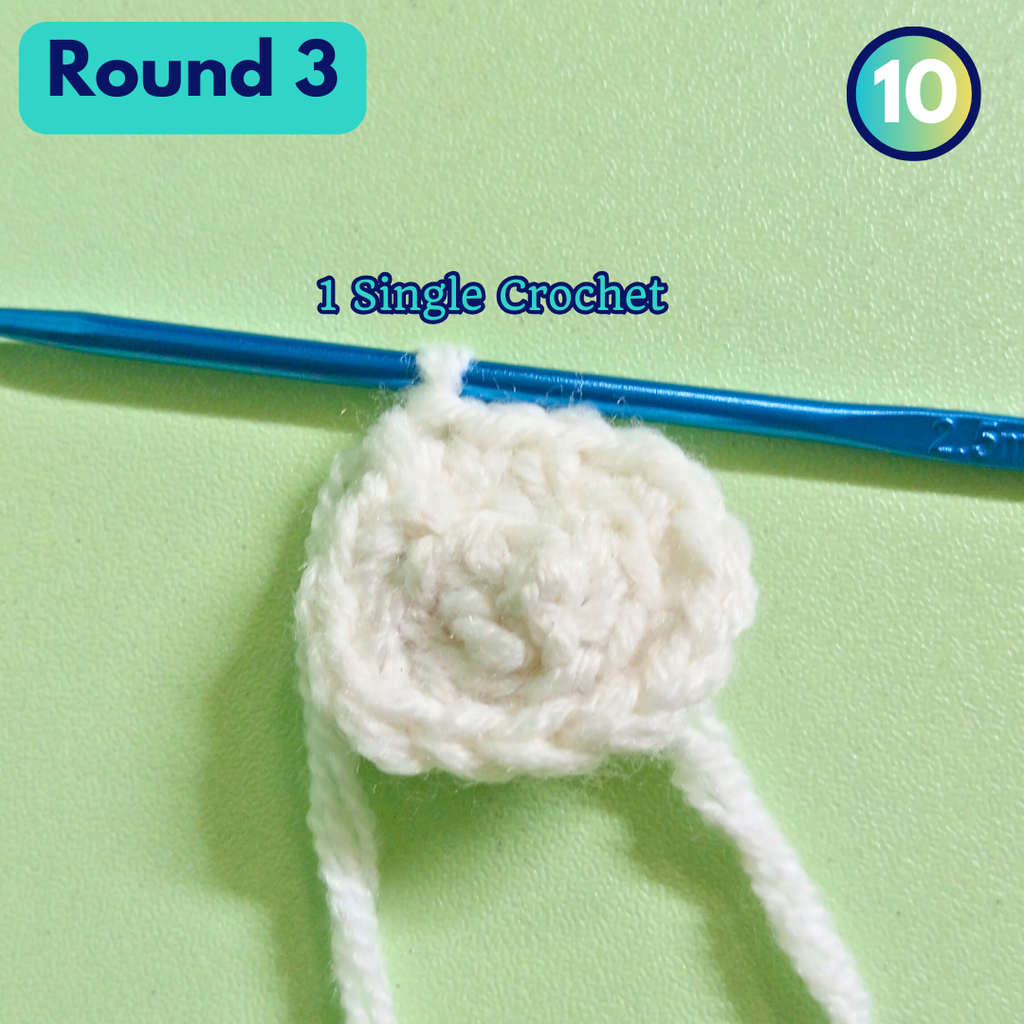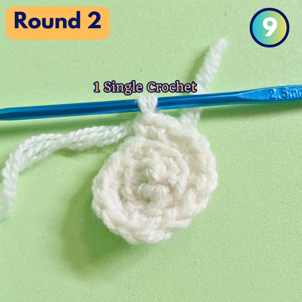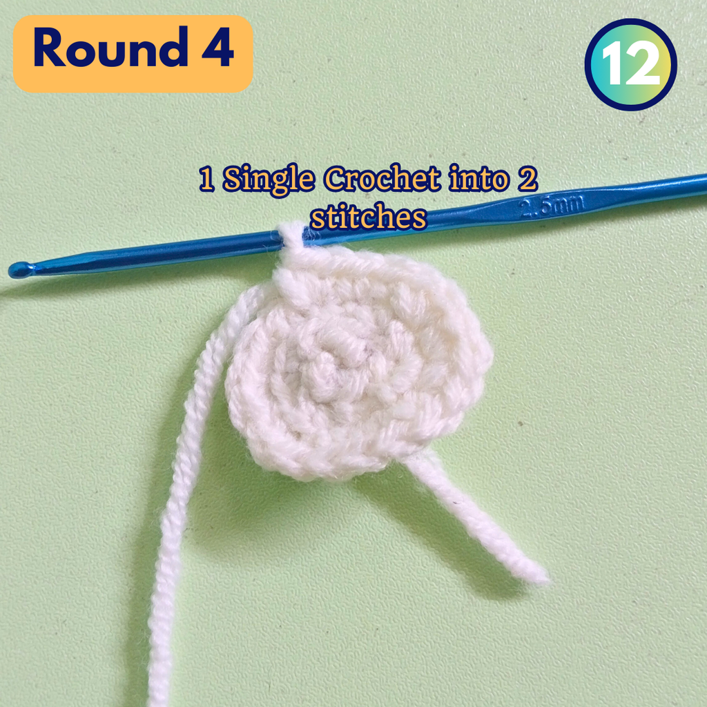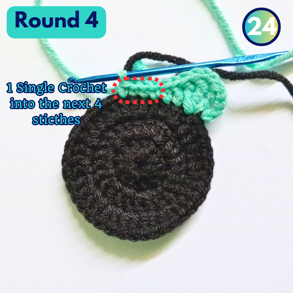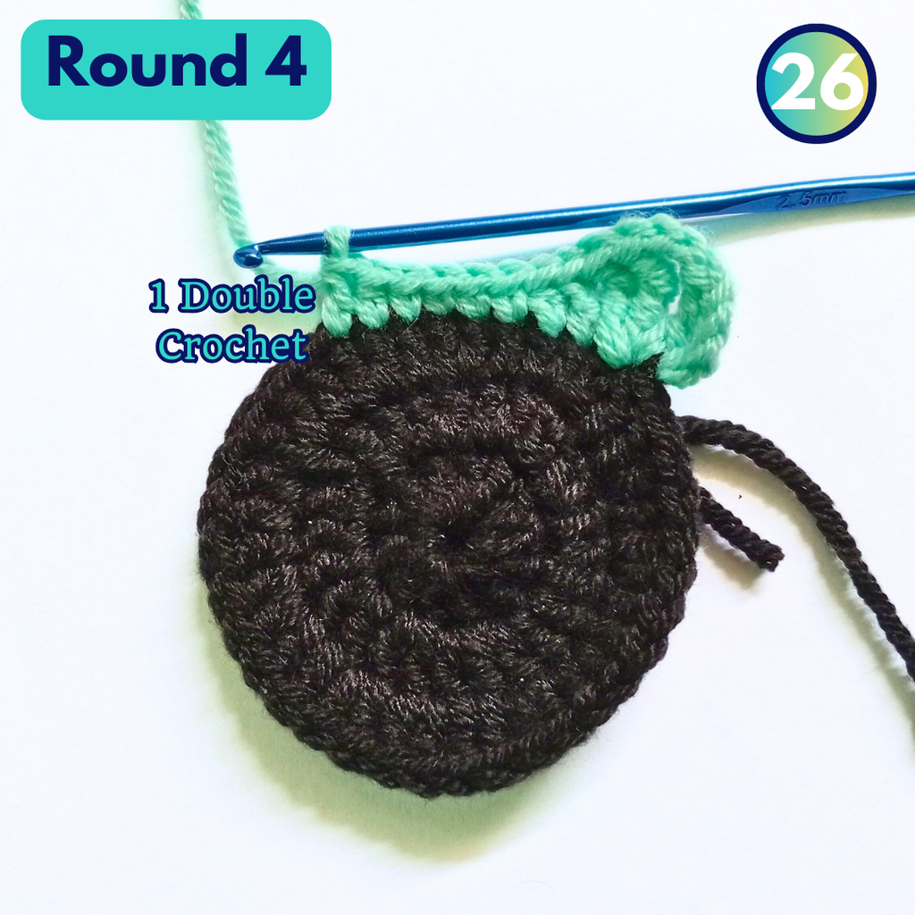 2 Double Crochet into every stitch around. So, there will be 24 double crochets in total. It’s always a perfect idea to count to check if you have all 24 stitches