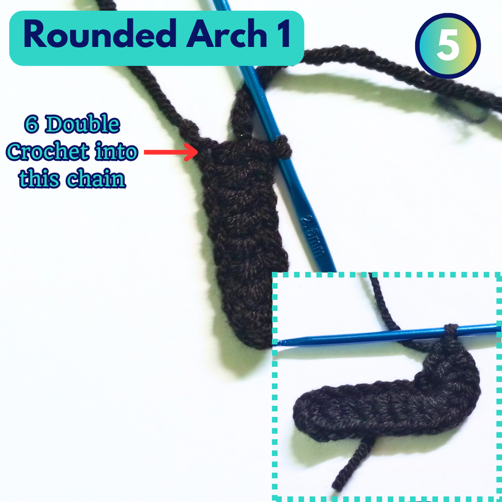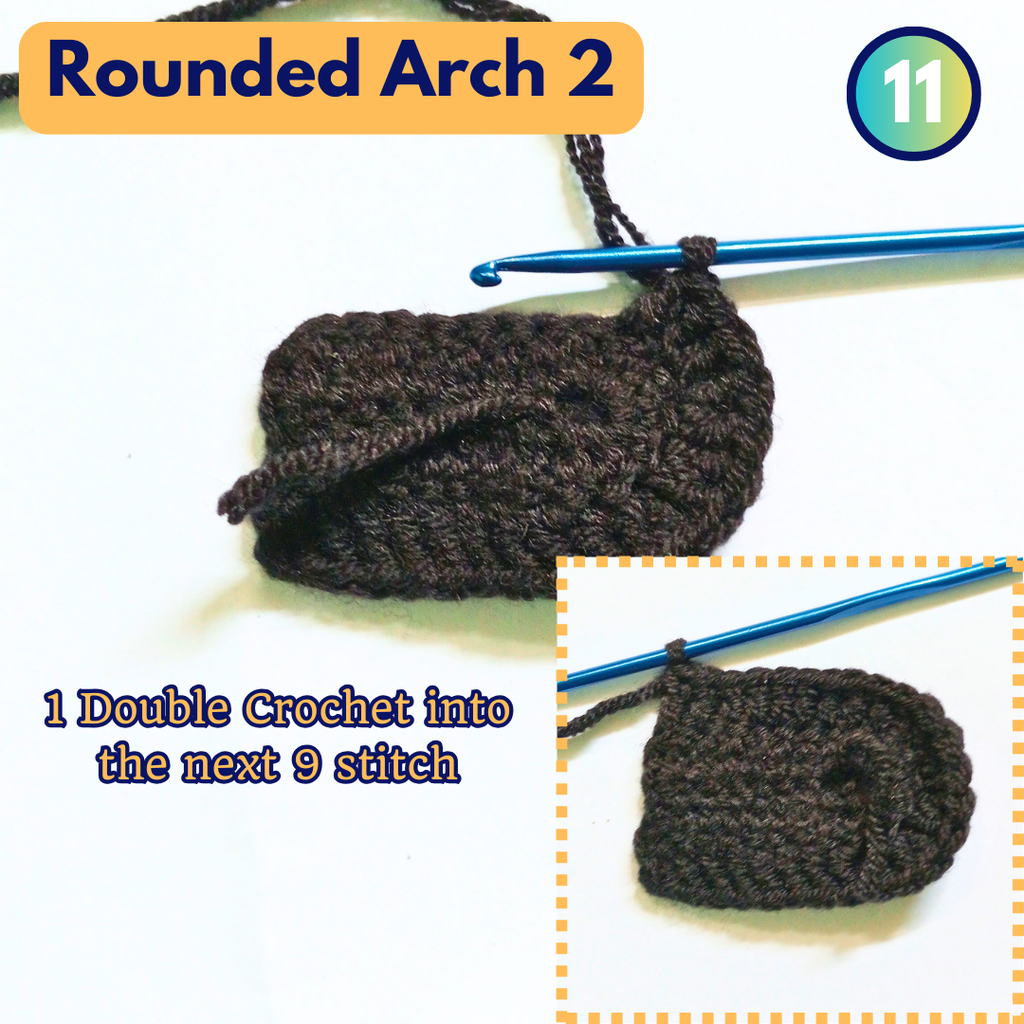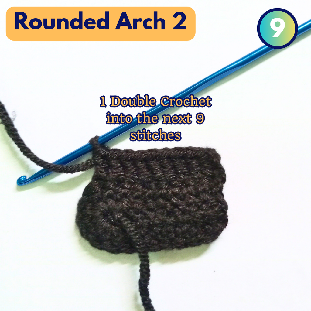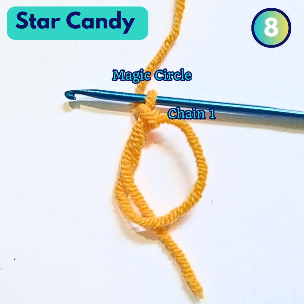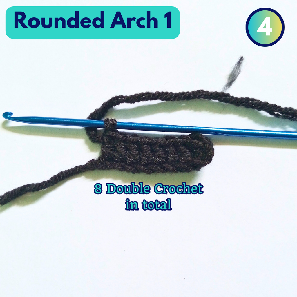 1 Double Crochet into every remaining Stitch (8 DC in total)