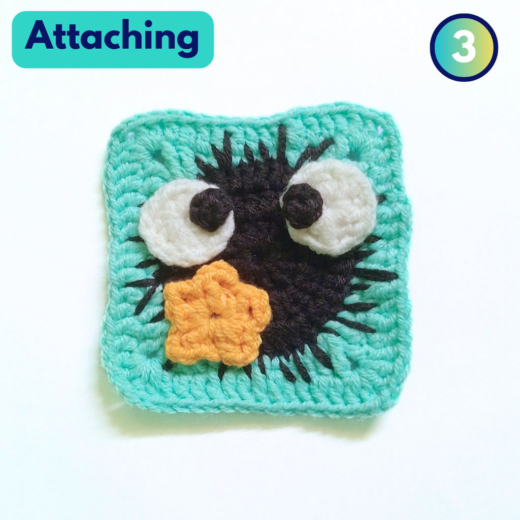 Use the remaining yarn from every parts to attach them on to the base (square). You can use a tapestry needle to help you, but you can also use your hook (I used my hook).