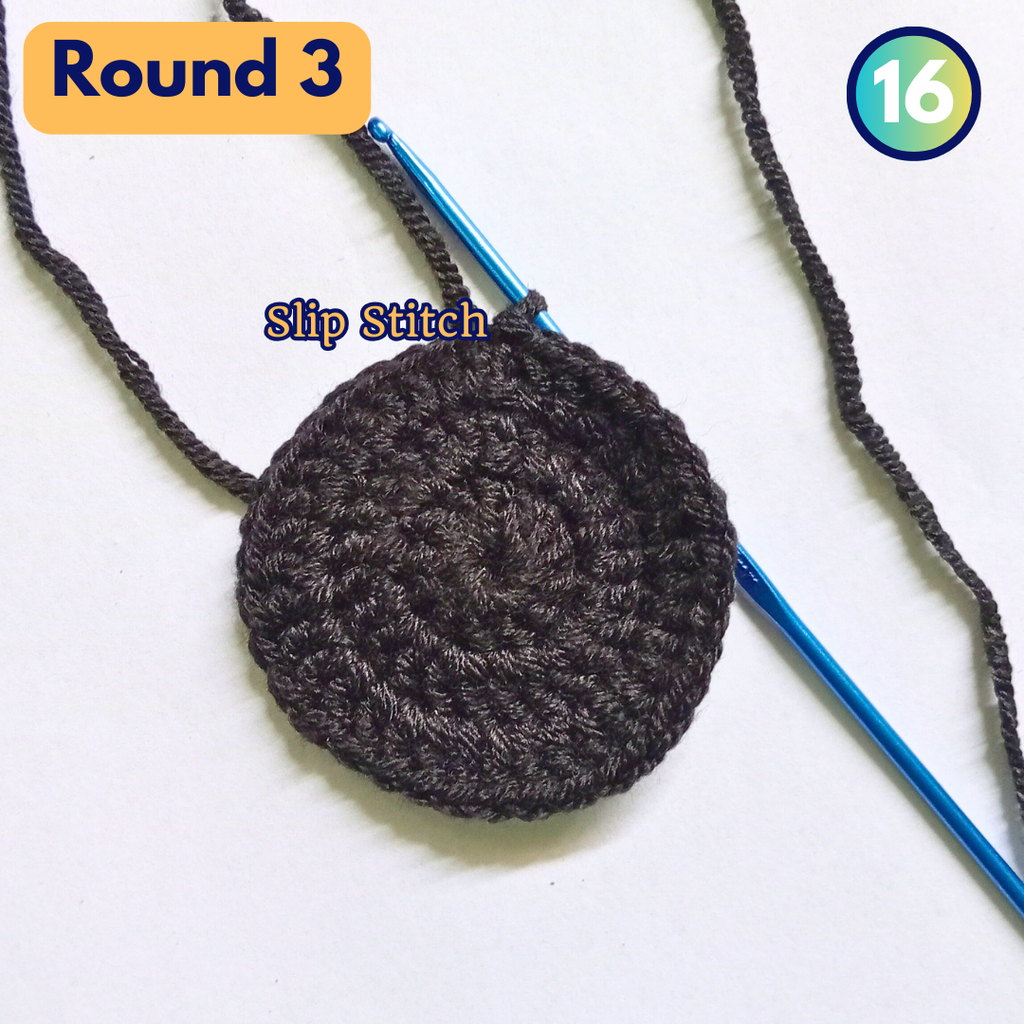 Slip stitch into the very first Stitch. There will be 36 double crochet in this last round.