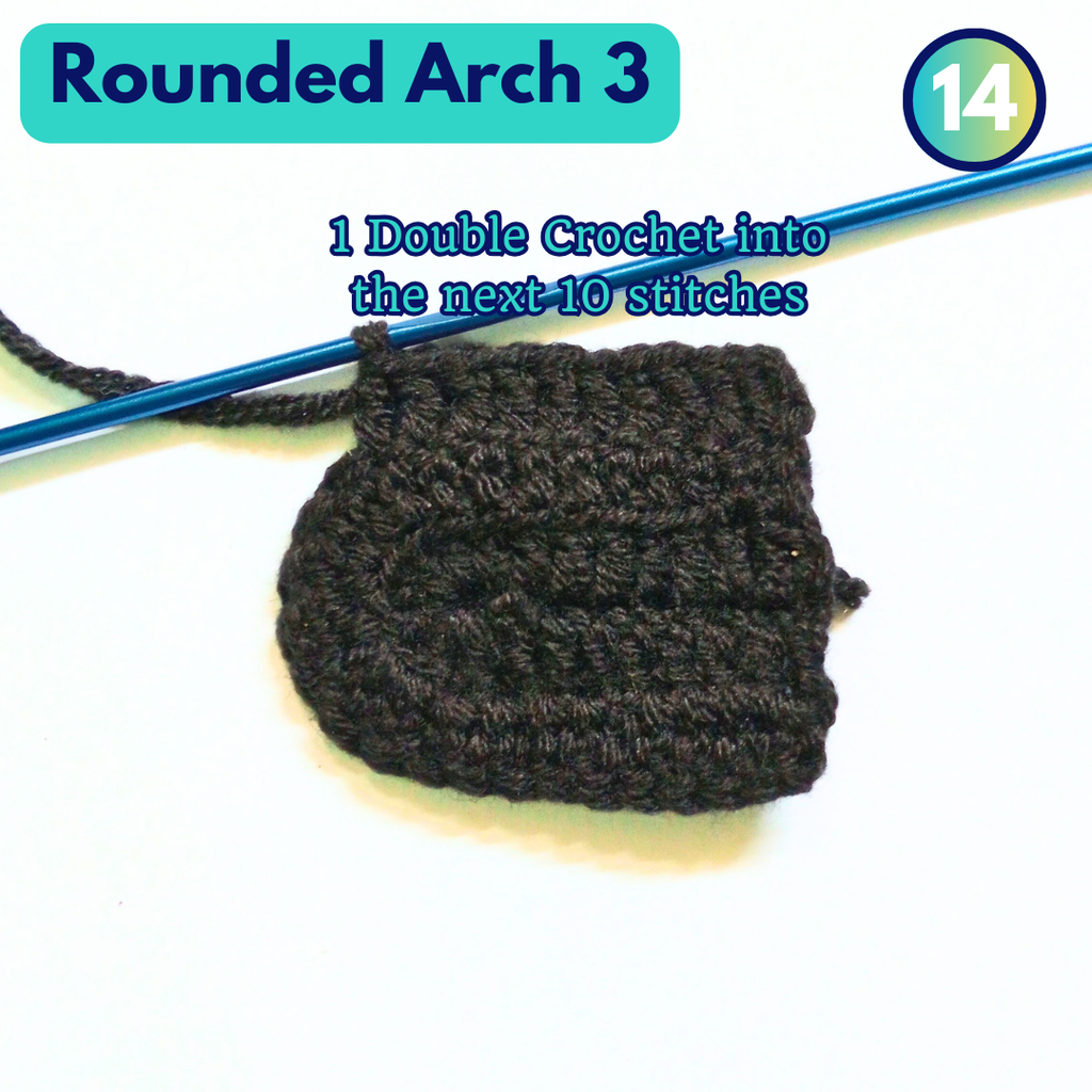 Make the next side of your square just like you did before (the last side will be 1 Double Crochet into the next 10 Stitches, instead of 12)