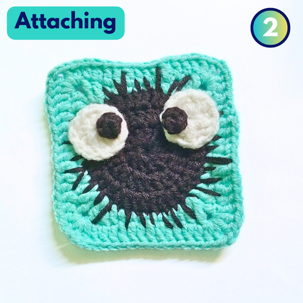 To attach the mask, follow the previous Susuwatari attachment step. However, for the eyes and the marks, you can use your yarn and tapestry needle and do it manually.