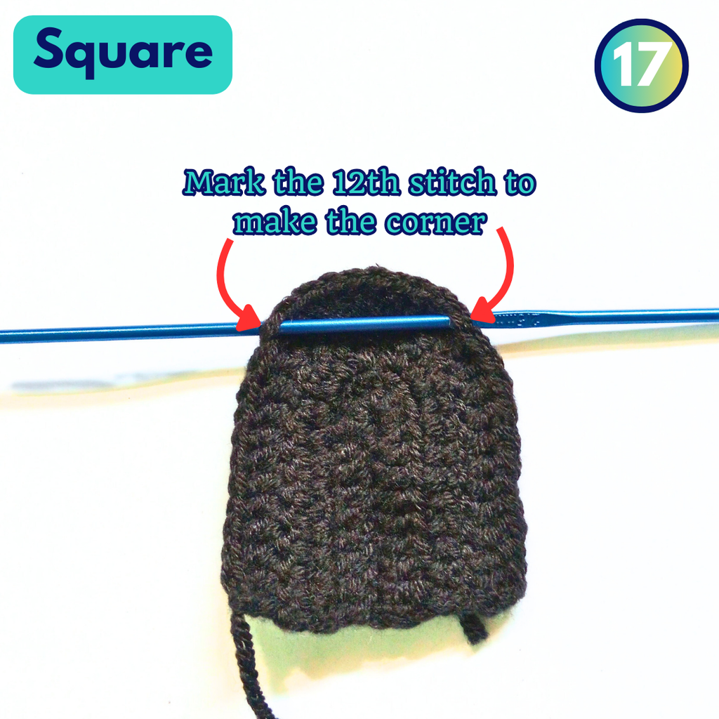 After the rectangle is formed, you will notice that the shape is a bit taller. To make it square, I added Half Double Crochet in every stitch on the right and left sides.
